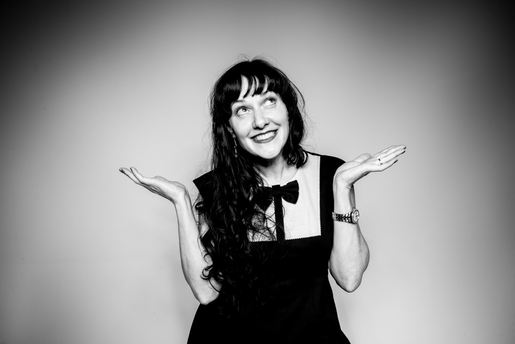 Teona Looking up. Black and white picture.